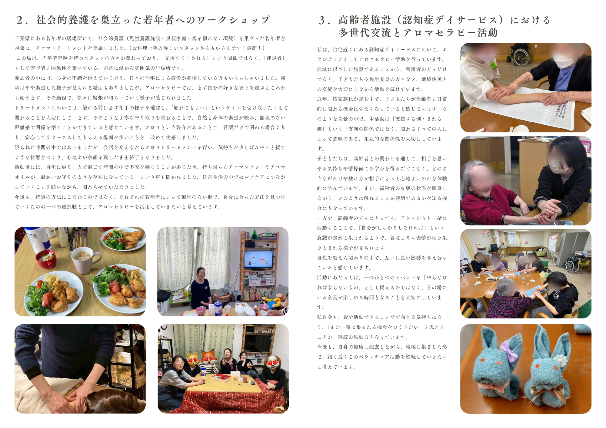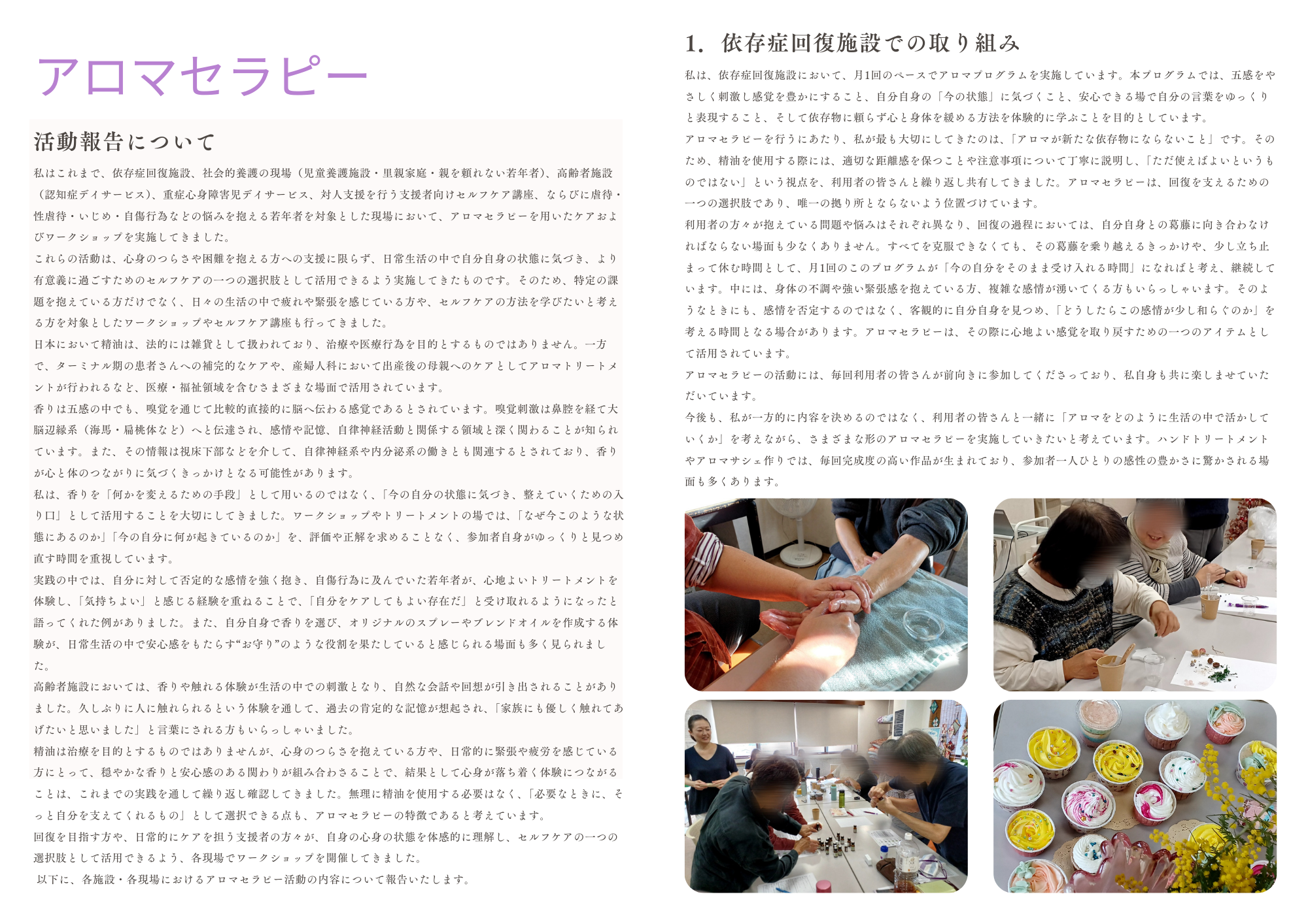 「アロマセラピー活動報告書」としてまとめています。